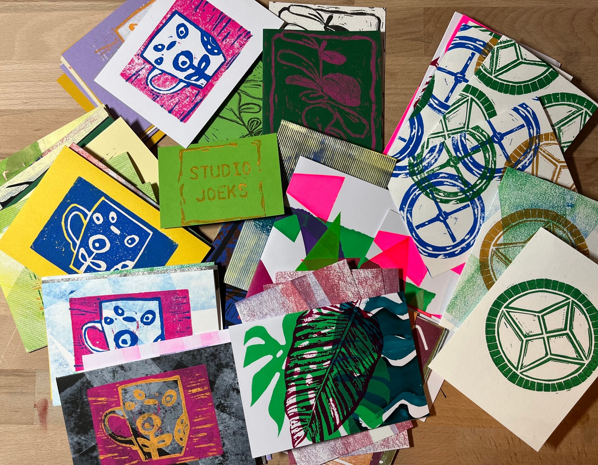 Bij Studio Joeks ben je welkom voor een creatieve workshop in linosnede, (drink)glas graveren of zeefdrukken met diy methoden.